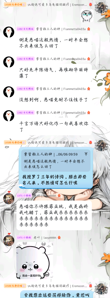 在大群咋咋呼呼,到处乱讲说老叶( @laoyehhhh )是他姥姥,让大家误以为铃兰是老年人社团,甚至惊动小麦,其罪十五。