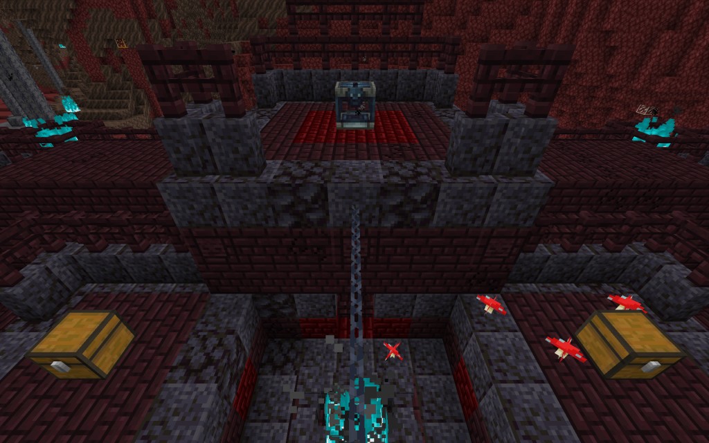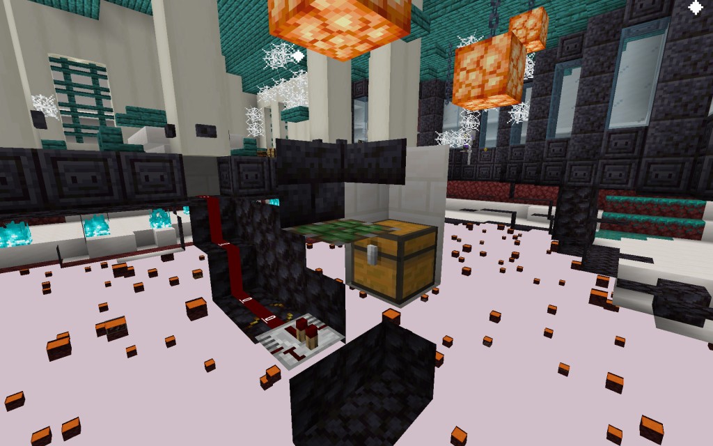 通过特定柱子上的按钮可以打开在其一楼地板下隐藏的宝箱,其中有小概率生成下界合金碎片