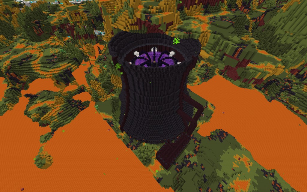 下界反应堆由中央的冷却塔和旁边的控制室组成。在冷却塔顶端的托卡马克装置中,圆环内的方块有小概率会被替换成远古残骸。而在控制室旁连接地面的管道中,也必定会有一个远古残骸位于底端