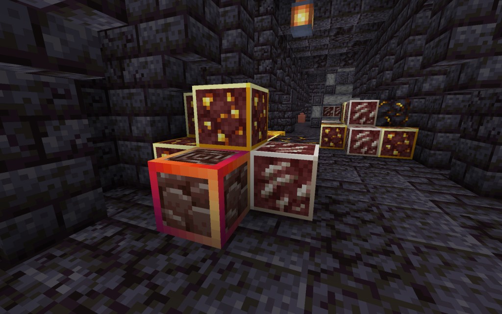 除了在箱子中有小概率生成远古残骸或下界合金碎片,在一大一小两个矿物房间中,也会固定生成几个远古残骸