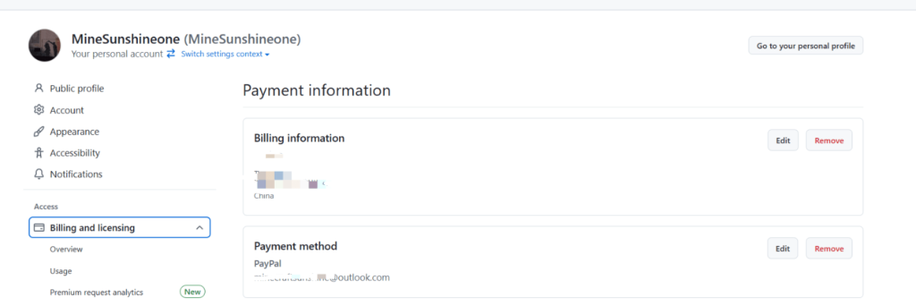 进入 settings/billingpayment_information