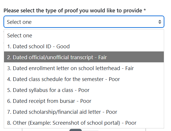 你就选择Other ,理由写 i am in dormitory,然后自拍一张就行了