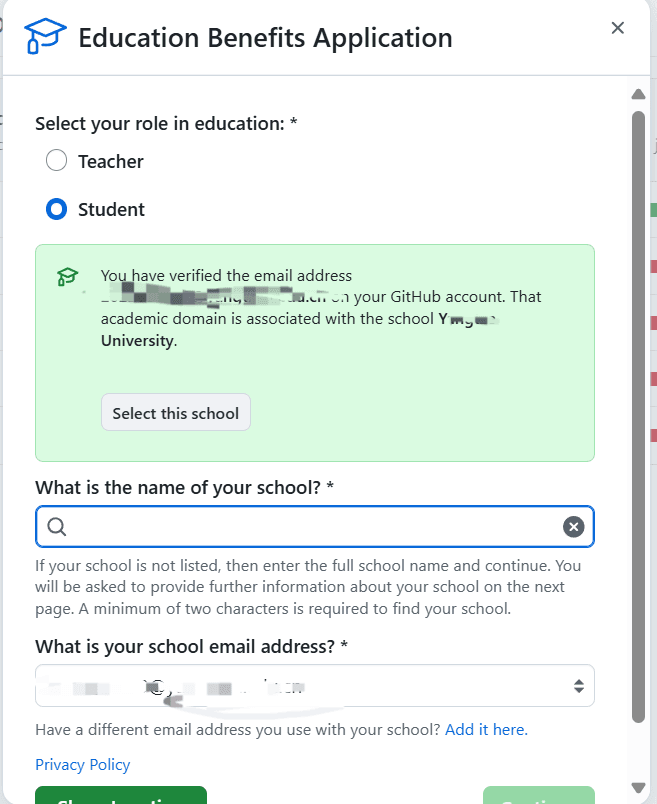 然后选择你的教育邮箱,选择了邮箱学校之类的应该会自己出来