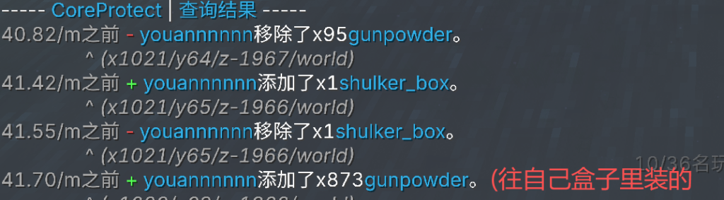 值此之时,组织内另一人,名曰“X”(化名),问询前来,于仓库原木类别之箱前站定,奶心大喜,自以为有二人站定于仓库,此人定不能肆意妄为,乃与x并肩而立,作挂机状,暗地观察此人所为。但此人不知为何,或许是实在有多动症状吧,先投掷仓库中忠诚五之试炼者三叉戟,后又反复挖掘多个潜影之盒,使老奶心下悬疑不绝,焦急难耐。