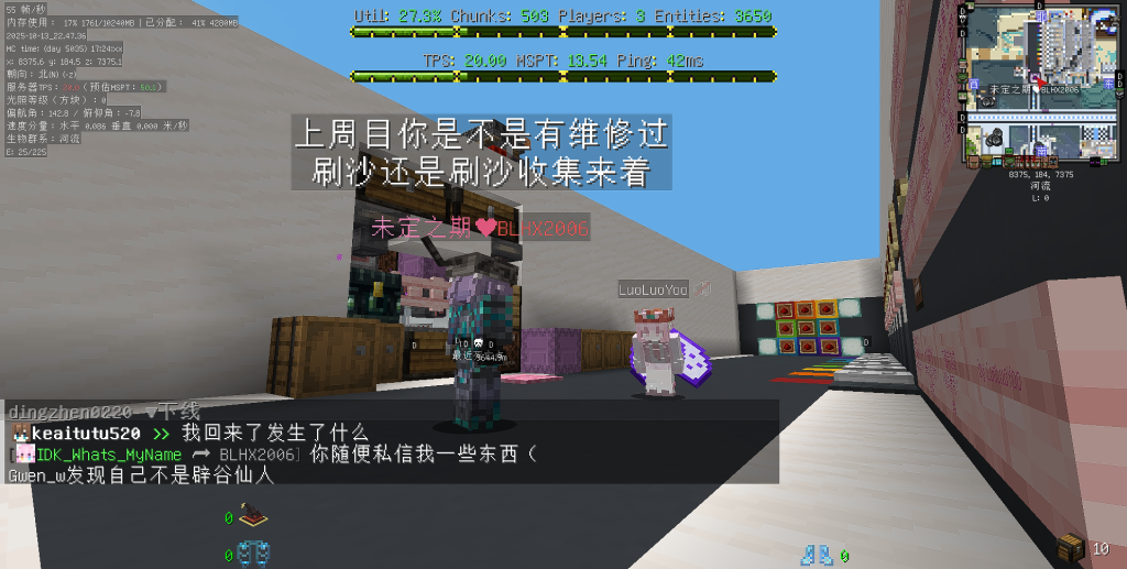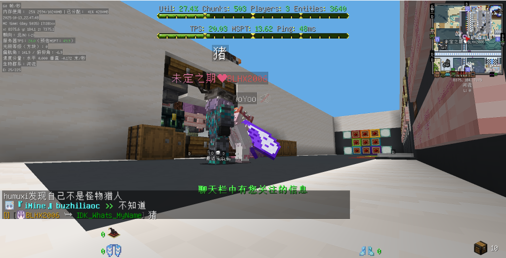 IDK_Whats_MyName 服务器的聊天气泡会把私聊的消息也显示到自己头上,而且没办法调整可见/不可见,请问能否使用仅需要客户端安装的mod来实现这个气泡功能呢,比如聊天工具箱(chattool),没有私聊显示问题,不需要服务器插件,也非常容易上手(可以在懒人包里准备好预设),配置起来很自由(x,y偏移,气泡持续时间)